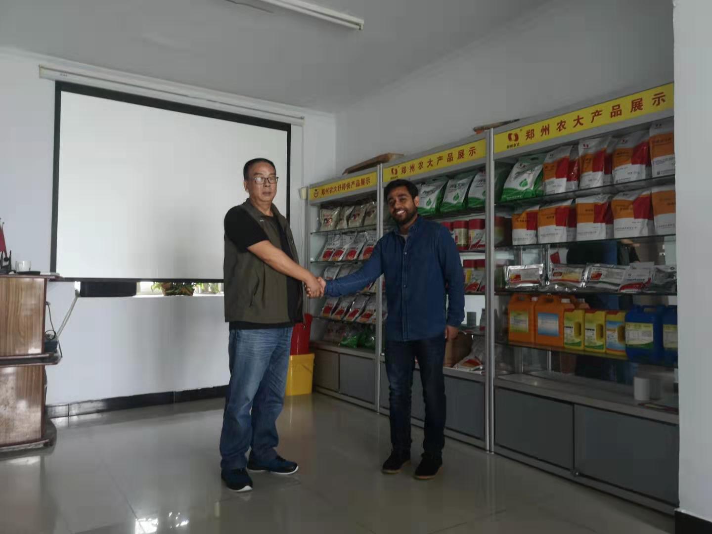 2019年9月21-23日,公司董事长邢新强陪同巴基斯坦客商参观了厂区、市区办公室及产品展示,详细的介绍了公司的发展历程及长远规划;借着中国改革开放的时机,乘着一带一路的东风,让郑州农大的产品走出国门,销向全球。